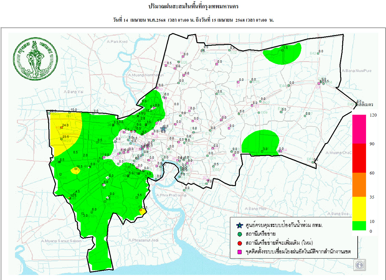 ปริมาณน้ำฝนในพื้นที่ กทม