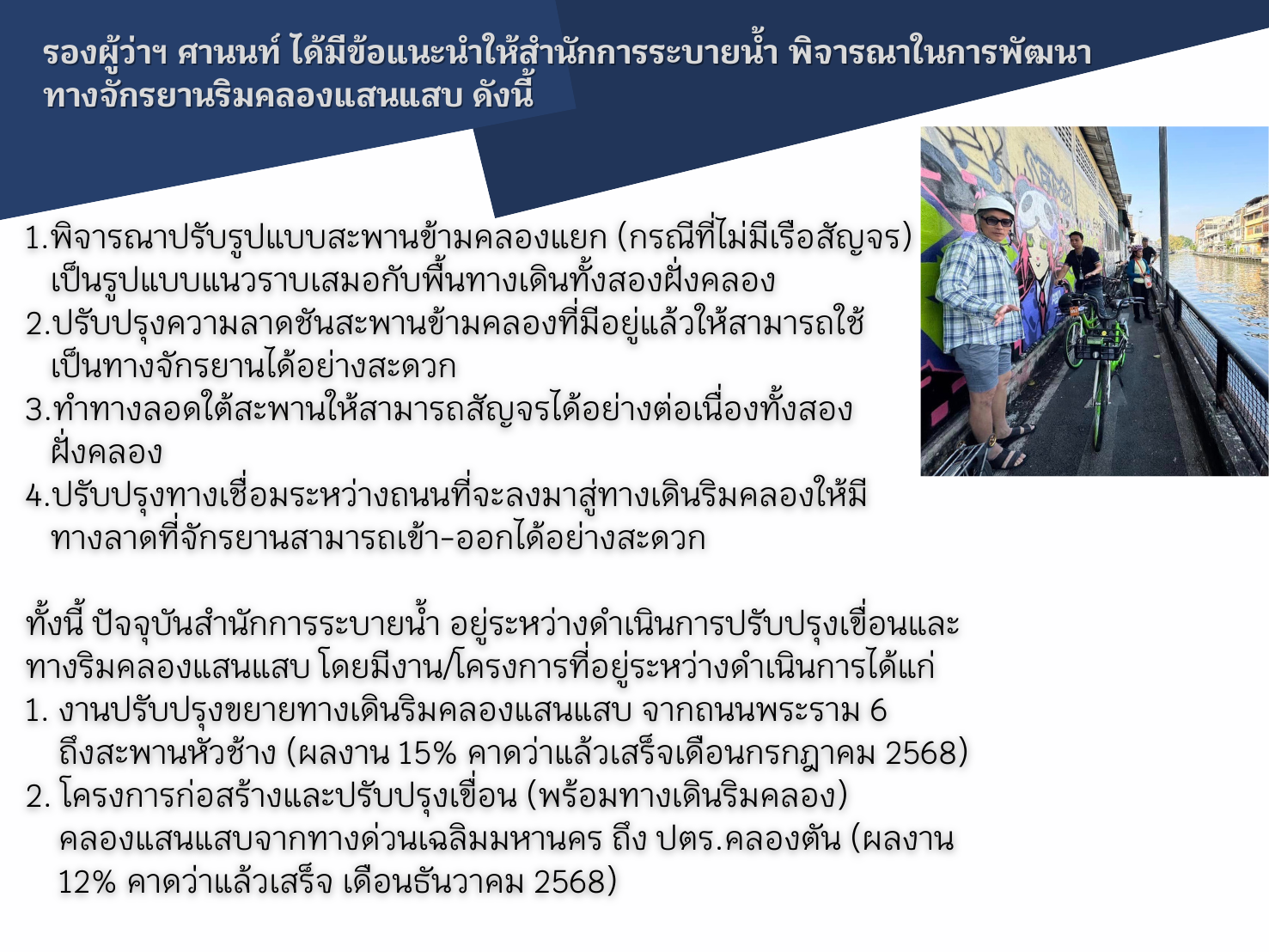 รองผู้ว่าฯ ศานนท์ ปั่นจักรยาน สำรวจเส้นทางเดิน ทางจักรยานริมคลองแสนแสบ จากผ่านฟ้าฯ ถึงประตูน้ำ
