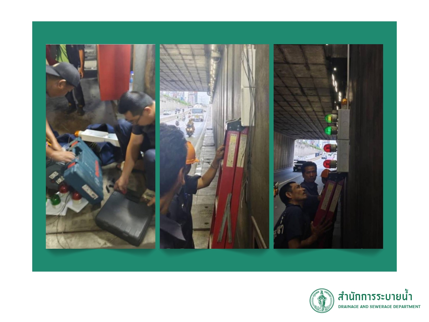 สำนักการระบายน้ำ โดยสำนักงานระบบควบคุมน้ำ จัดเจ้าหน้าที่เข้าดำเนินการติดตั้งระบบไฟแจ้งเตือนสถานะการทำงานของเครื่องสูบน้ำ ณ อุโมงค์ทางลอดรถยนต์ห้วยขวาง (ฝั่งขาเข้า) เพื่อเพิ่มประสิทธิภาพในการเฝ้าระวังและตรวจสอบระบบสูบน้ำ โดยสามารถเห็นสัญญาณแจ้งเตือนดังกล่าวผ่านกล้อง CCTV ของศูนย์ควบคุมระบบป้องกันน้ำท่วม สำนักการระบายน้ำ ได้โดยตรง
