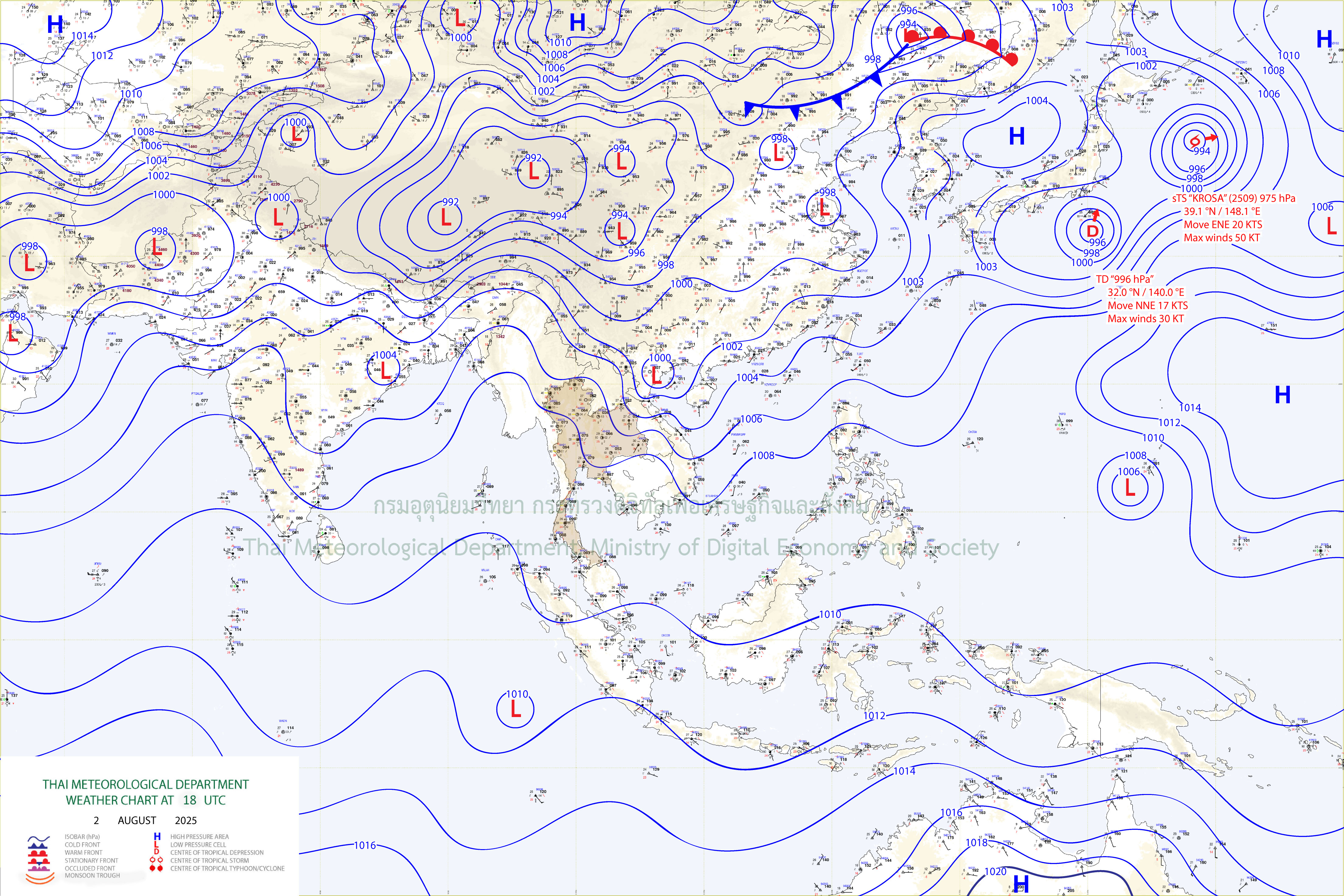ลักษณะอากาศทั่วไป : พยากรณ์อากาศ 24 ชั่วโมงข้างหน้า ประเทศไทยตอนบนมีฝนน้อยเนื่องจากมรสุมตะวันตกเฉียงใต้กำลังอ่อนพัดปกคลุมทะเลอันดามัน ประเทศไทย และอ่าวไทย ในขณะที่มีหย่อมความกดอากาศต่ำปกคลุมบริเวณประเทศเวียดนามตอนบนและอ่าวตังเกี๋ย