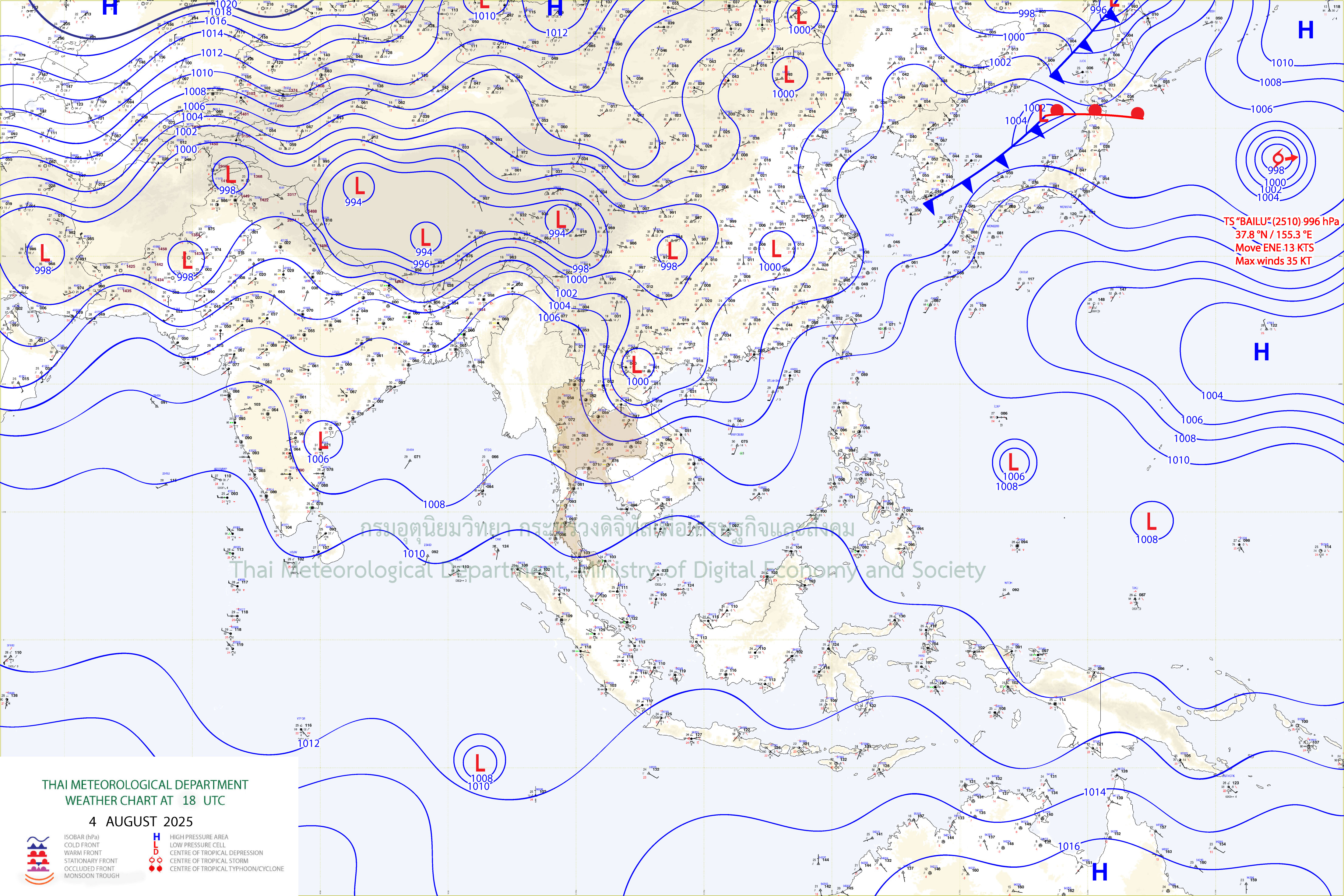ลักษณะอากาศทั่วไป : พยากรณ์อากาศ 24 ชั่วโมงข้างหน้า ประเทศไทยตอนบนมีฝนฟ้าคะนองบางแห่ง เนื่องจากมรสุมตะวันตกเฉียงใต้กำลังอ่อนยังคงพัดปกคลุมทะเลอันดามัน ประเทศไทย และอ่าวไทย ในขณะที่มีหย่อมความกดอากาศต่ำปกคลุมบริเวณประเทศเวียดนามตอนบน สำหรับคลื่นลมบริเวณทะเลอันดามันและอ่าวไทยมีกำลังปานกลาง โดยบริเวณทะเลอันดามันตอนบนมีคลื่นสูง 1-2 เมตร บริเวณที่มีฝนฟ้าคะนองคลื่นสูงมากกว่า 2 เมตร ขอให้ชาวเรือบริเวณทะเลอันดามันและอ่าวไทยเดินเรือด้วยความระมัดระวัง และหลีกเลี่ยงการเดินเรือในบริเวณที่มีฝนฟ้าคะนอง