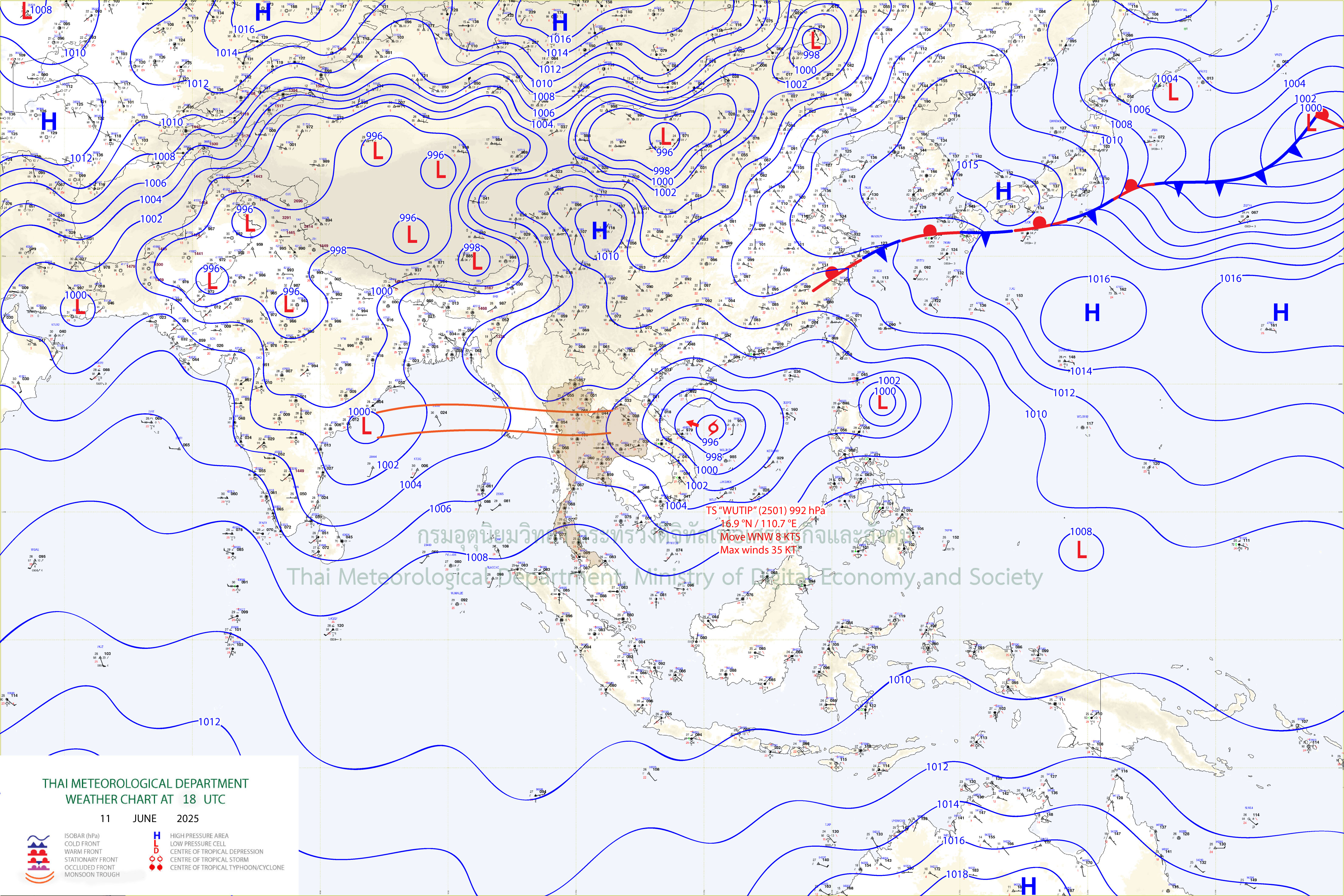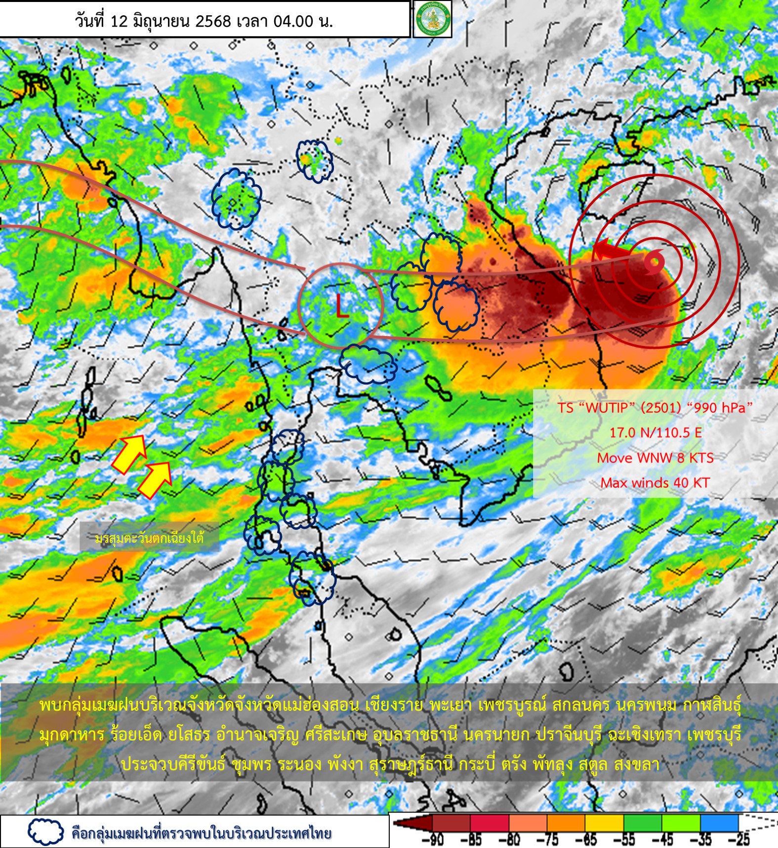 อนึ่ง พายุโซนร้อน “หวู่ติบ” บริเวณทะเลจีนใต้ตอนบน คาดว่าพายุนี้จะเคลื่อนผ่านเกาะไหหลำ เข้าประเทศจีนตอนใต้ ในช่วงวันที่ 13-14 มิ.ย. 68 ขอให้ผู้ที่จะเดินทางไปบริเวณดังกล่าวตรวจสอบสภาพอากาศก่อนออกเดินทางในช่วงวันดังกล่าวไว้ด้วย โดยพายุนี้จะไม่เคลื่อนเข้าสู่ประเทศไทย