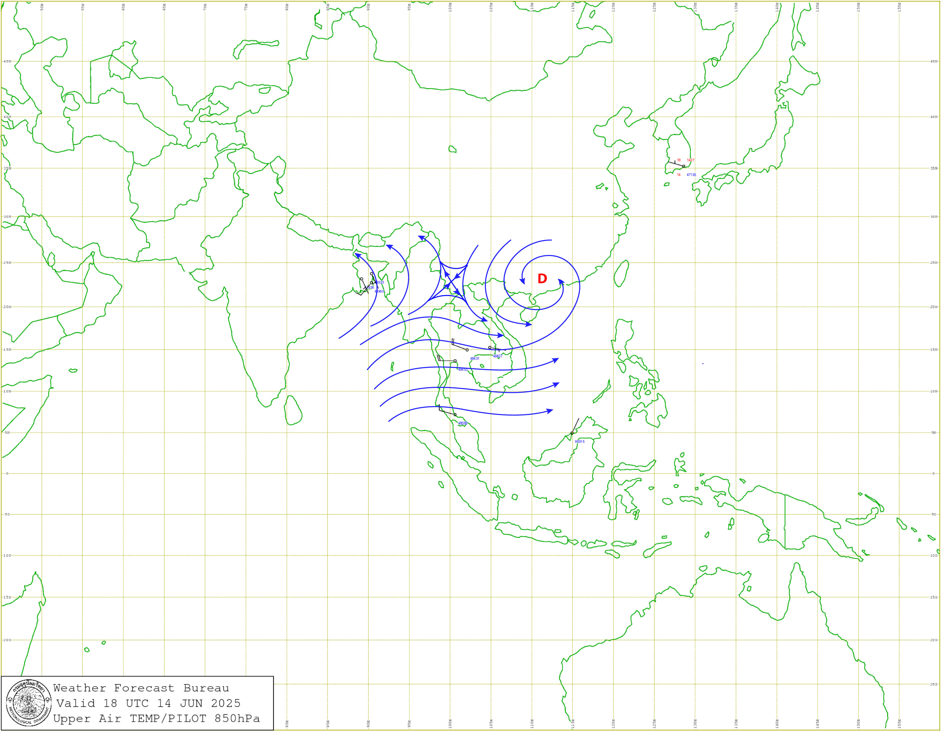 กรุงเทพมหานครและปริมณฑล : มีฝนฟ้าคะนอง ร้อยละ 60 ของพื้นที่ อุณหภูมิต่ำสุด 25-27 องศาเซลเซียส อุณหภูมิสูงสุด 32-35 องศาเซลเซียส ลมตะวันตกเฉียงใต้ ความเร็ว 10-20 กม./ชม.